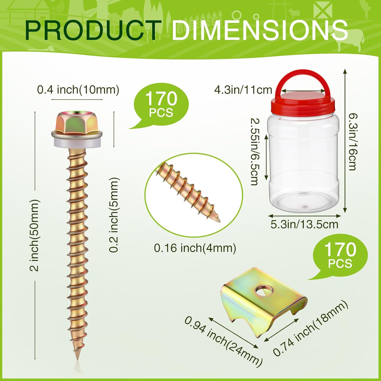 Features: Enhance your DIY projects and outdoor structures with our fence fasteners for wire fencing, meticulously engineered for cork and crafted to provide superior durability and reliability. Whether you're constructing a garden trellis, a durable chicken coop, or resilient vine supports, our fence staples for wire fencing deliver unmatched performance in every context. Specifications: Material: galvanized iron Color: gold Size: 2 inches Package includes: 170 x Fence staples for wire fencing Notes: Manual measurement, please allow slight errors on size. The color may exist a slight difference due to different screen displays. Pointed items are included, please be careful when using and please keep them away from kids