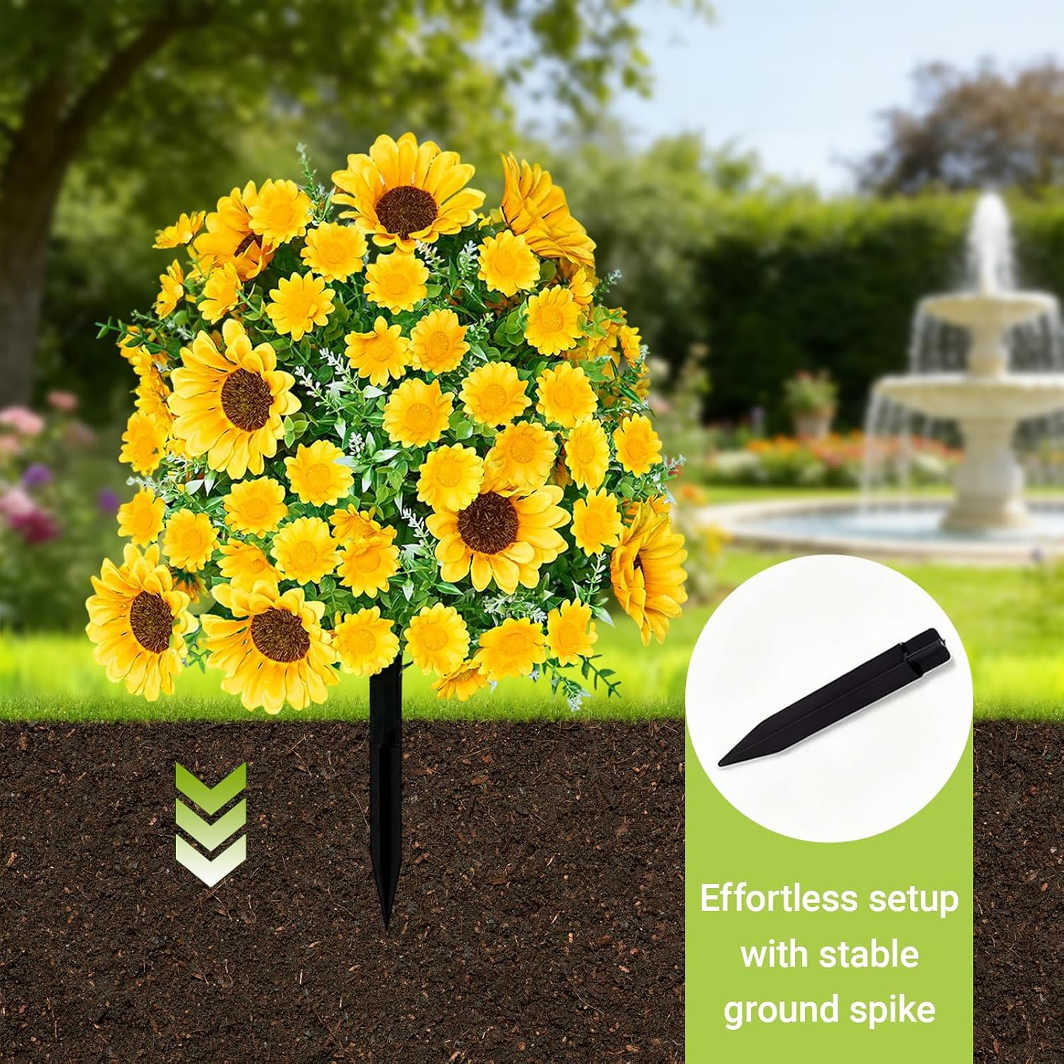 Bring Endless Sunshine to Your Space: Enjoy a perfectly full and spherical floral arrangement, bursting with lifelike sunflowers and daisies, that never droops or fades. Crafted from premium UV-resistant materials to stay vibrant and beautiful season after season, indoors or out. Achieve stunning decor in seconds with the easy-to-use ground stake—just place it and enjoy. Its versatile and weatherproof design makes it the perfect solution for gardens, patios, desks, weddings, and countless other spaces. It's a meaningful, zero-maintenance gift that conveys lasting joy, making it superior to traditional cut flowers. Specifications: Product Name: Set of 2 Artificial Flower Trees Material: Plastic & Silk Flowers Sphere Diameter: Approx. 13.78 inches (35 cm) Total Height: Approx. 21.65 inches (55 cm) Weight per Tree: Approx. 0.66 lbs (0.3 kg) Applicable Scenarios: Porch, Garden, Doorway, Living Room, Indoor Decor, Outdoor Decor. Decoration Suggestion: You can directly insert the fake flowers into the lawn or into the bushes to make them look real and realistic from a distance. You can also place faux flowers in various vases or baskets and use them to decorate your corridors, doors, balconies, gardens, and more. Use your imagination to make your home more beautiful. Package Includes: 2 x Artificial Flower Clusters Kind Reminder: Please read before purchasing 1. A temporary plastic odor may occur after shipping; simply air outdoors for a short time to refresh. 2. Leaves or blooms may loosen during transit; a gentle fluffing by hand will restore their natural fullness. 3. Though UV-resistant, prolonged intense sun may gradually affect color over many seasons. After-sales Service: If you have any questions about artificial plants, please feel free to contact us. We will reply and solve your problems within 24 hours. Wishing you a wonderful day!