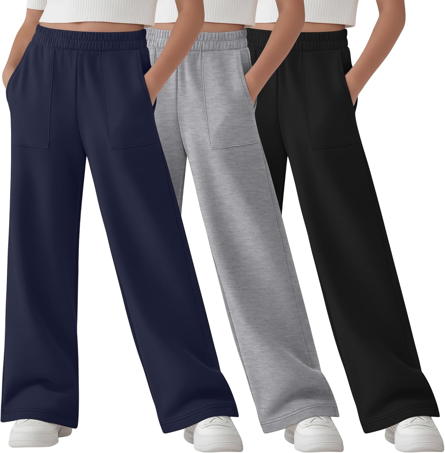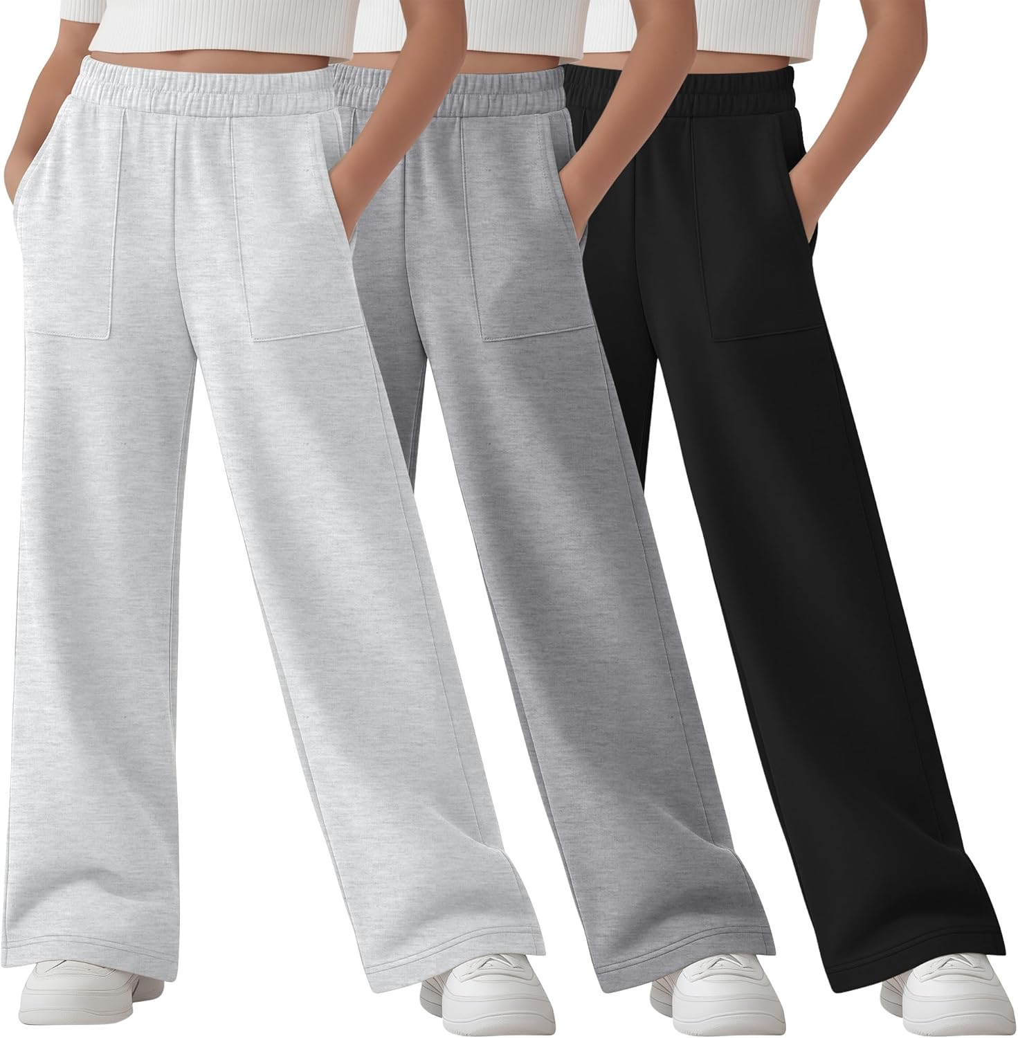Features: Details about the cut and design: The girl's straight leg sweatpants are normal version design, suit for most body shape. Nice present for girls: The girl's straight leg sweatpants are suitable for girls of different ages, making it a good present for family. Specifications: Material: 95% Polyester, 5% Spandex Package includes: 3 x girl's straight leg sweatpants Notes: Manual measurement, please allow slight errors on size. The color may exist a slight difference due to different screen display. Check the YooAurvox size chart before purchasing, it would help you find a more accurate size for yourself. Hand/machine wash in gentle with cold water, hang to dry or line dry, do not bleach, warm iron if needed, wash dark colors separately