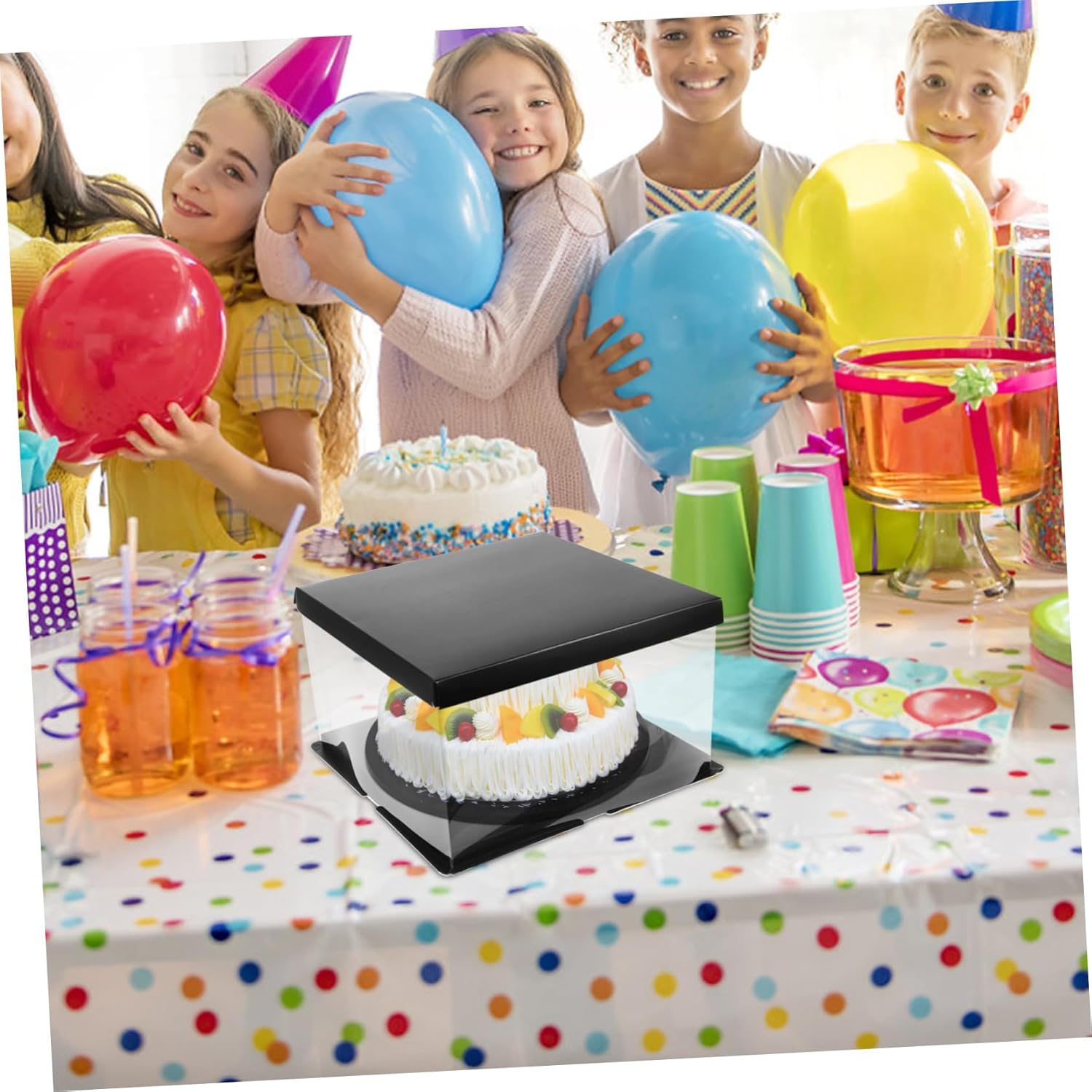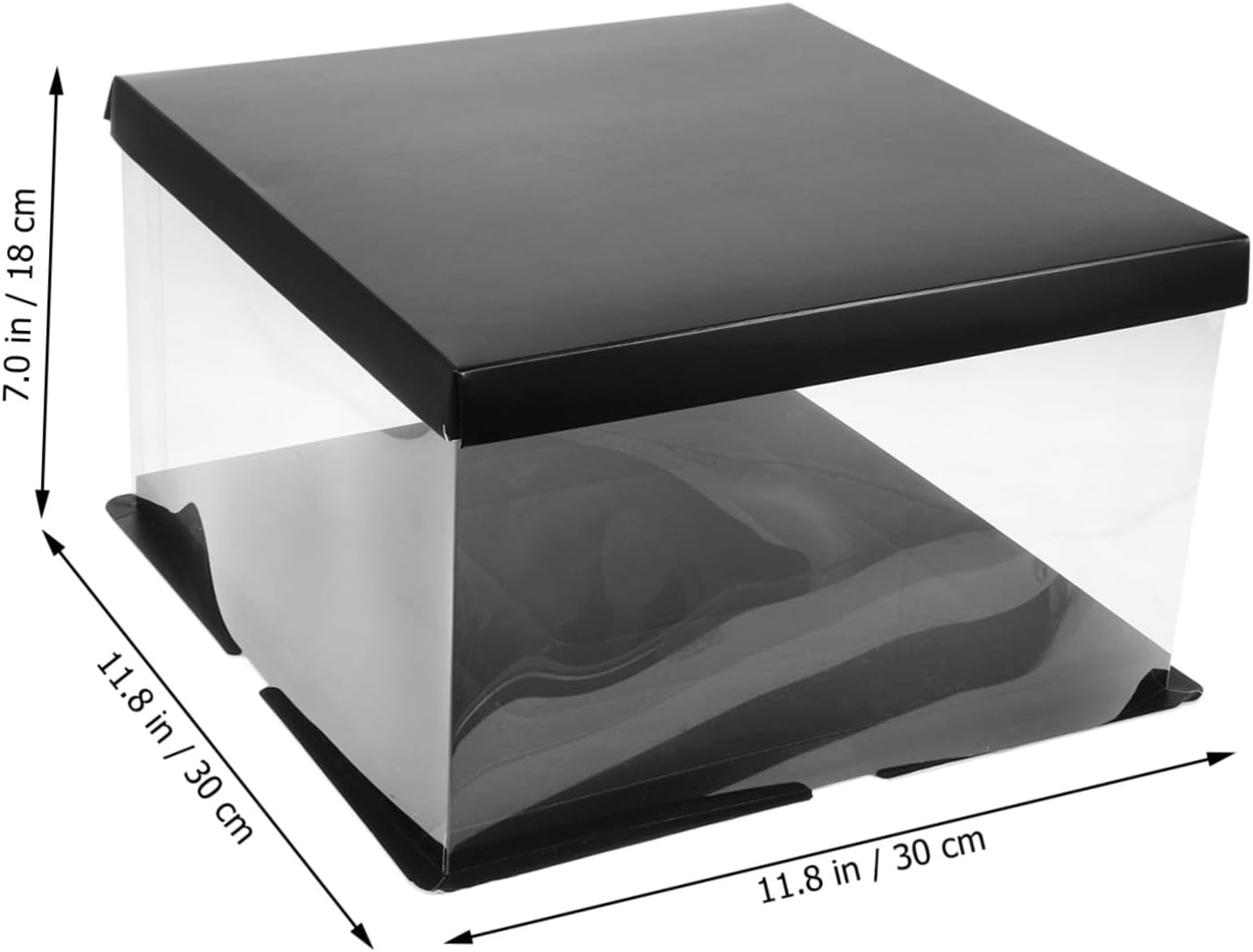 Package List 4 x Cake Box Features -Note: Not included ribbon wedding cake contianer -Color:Black Clear Cake Holder -Size:30.00X30.00X18.00cm/11.79X11.79X7 Birthday Packing Box. -Material:Paper,PVC dessert carrier -Wide application, the cake box is suitable for birthday, wedding, shower and other parties Transparent Cake Box. -The transparent cake box is designed to highlight the delicacy of the food inside without much decoration clear cake box. -This cake box is carrying and storing cake, cupcake, dessert food, small cake, etc Clear Birthday Cake Box. -With light weight, compact size, the cake box is easy to carry and store when not used Cake Box. -Compact and light in weight design for easy to carry, sufficient quantity can meet your quantity demands Cake Carry Case.Goods DescriptionClear Birthday Cake Box With a lid, this cake box is used for storing and protecting your products and items, especially cakes.Bakery Cake Box The cake carrier is made of stable material, protecting your cakes from all sides.Bakery Packing Box wrapping candies, sweets, cookies or any small you want to give