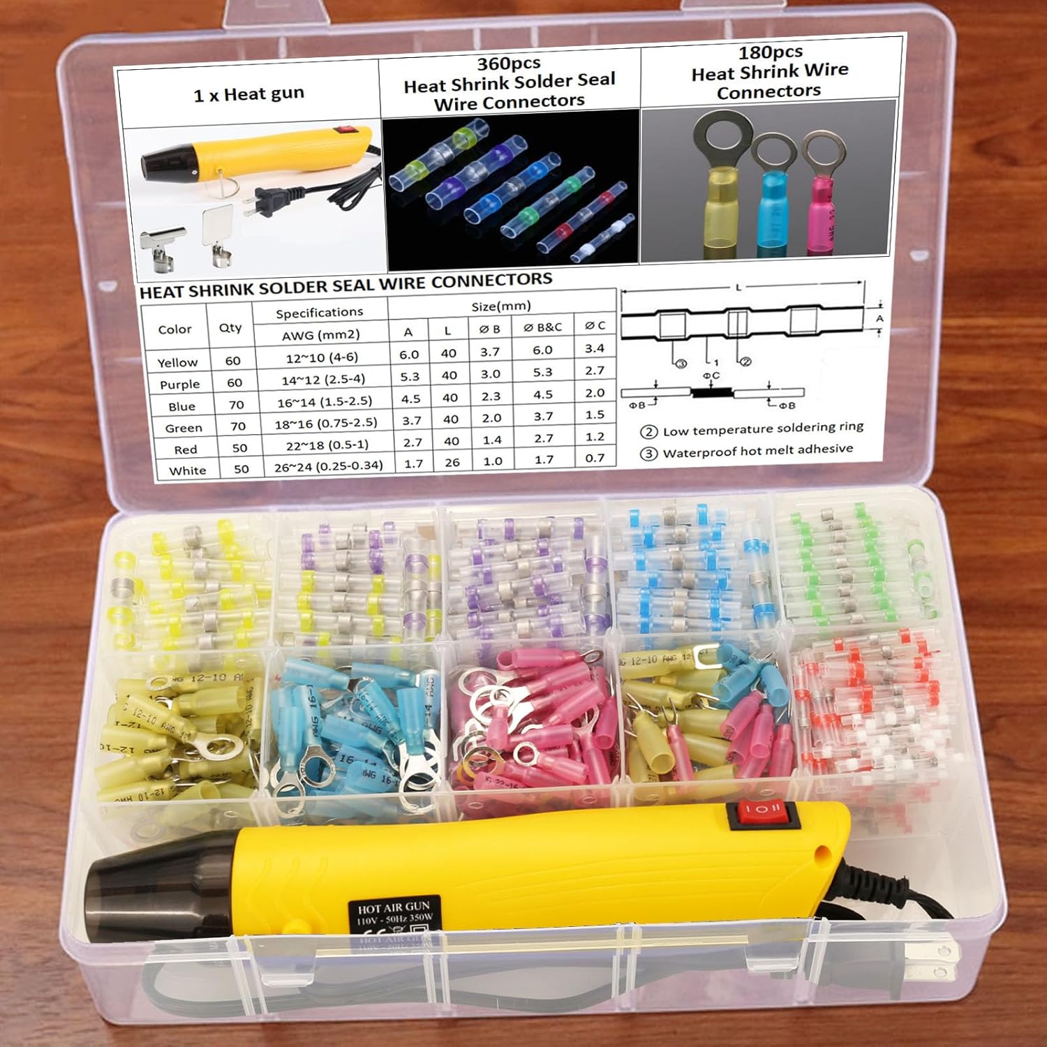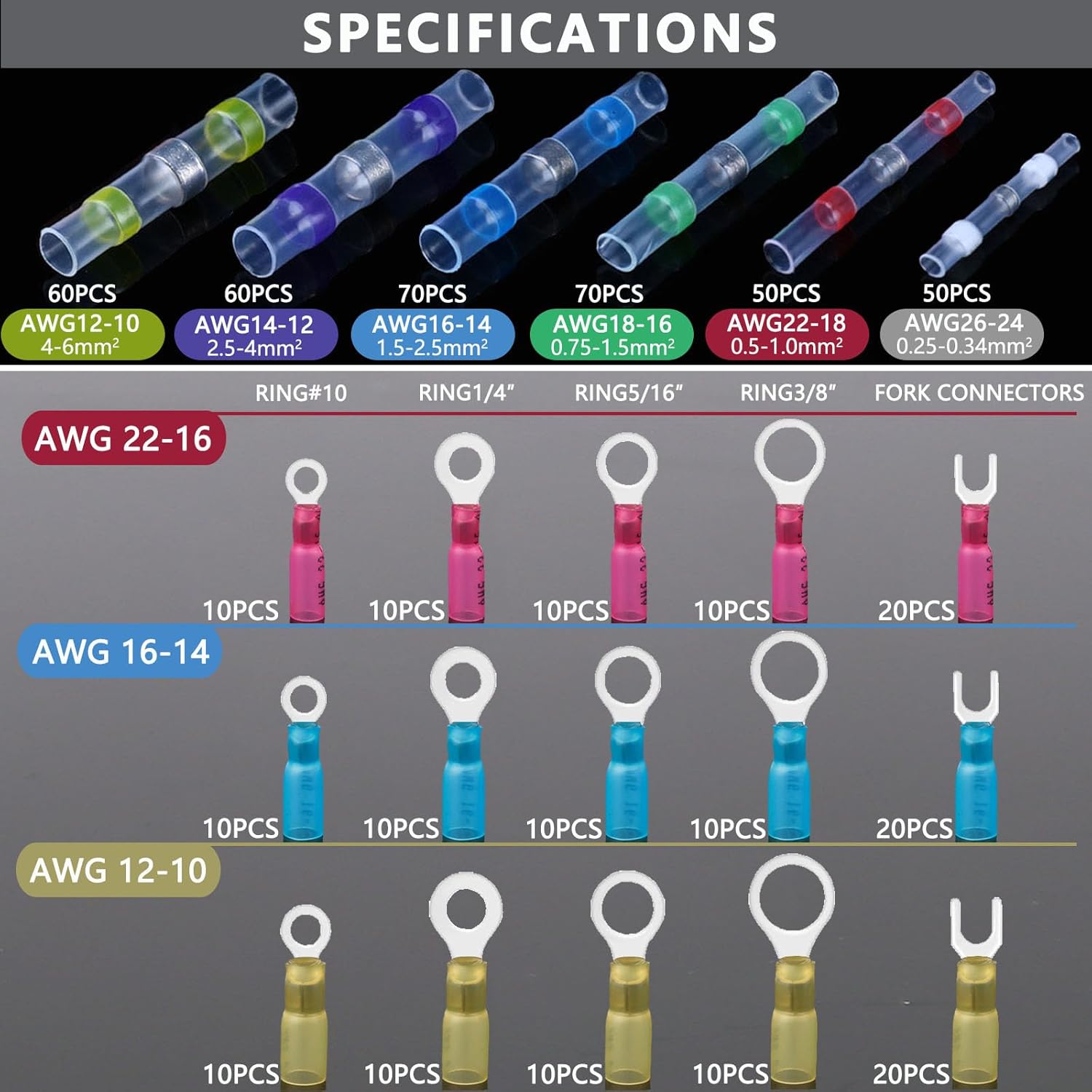 | Included Components | Heat Shrink Wire Connectors x 540pcs |