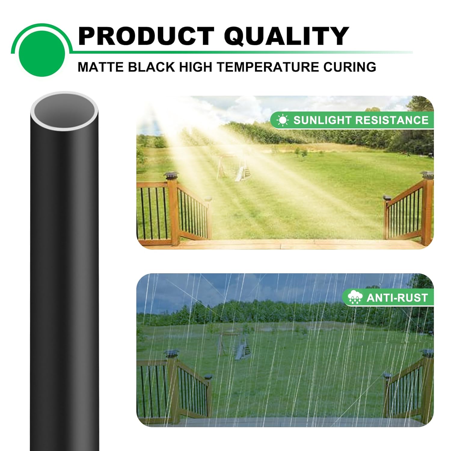 Andorm 60 Pack Black Metal Balusters for Deck 36 inch, Black Metal Deck Spindles 3/4", Aluminum Black Deck Railing Baluster Round Tube with Drill Bit for outdoor stairs