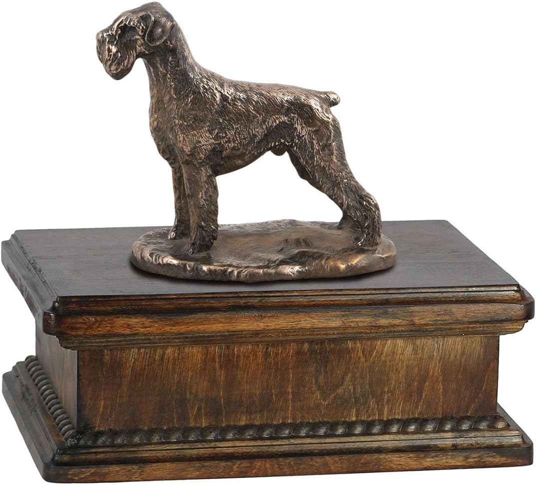 Handmade with precision and care, this urn stands as a testament to the enduring bond between you and your furry companion. Crafted from a solid birch wood base, this urn provides durability and longevity. The artistic touch comes to life with a choice of statues, including our exclusive Dog mama statue, symbolizing the nurturing love that transcends time. The statue is intricately crafted from Cold Cast Bronze, adding a touch of artistry to the memorial. Brass handles and wreath-shaped decorations embellish the urn, infusing an element of elegance. The removable lid enhances practicality, making it seamless to place your pet's ashes inside. This thoughtful design allows for ease of use during a difficult time, reflecting the deep love and respect you hold for your cherished companion. Measuring 21 x 29 x 22 cm, this urn provides ample space for your pet's ashes. Beyond its functional purpose, it becomes a timeless piece of art, radiating style and elegance. It is more than just a container; it's a dignified and personalized tribute that symbolizes the everlasting love and companionship you shared with your pet. Honor their memory with the Art-Dog Sitting Urn, where style meets sentimentality.