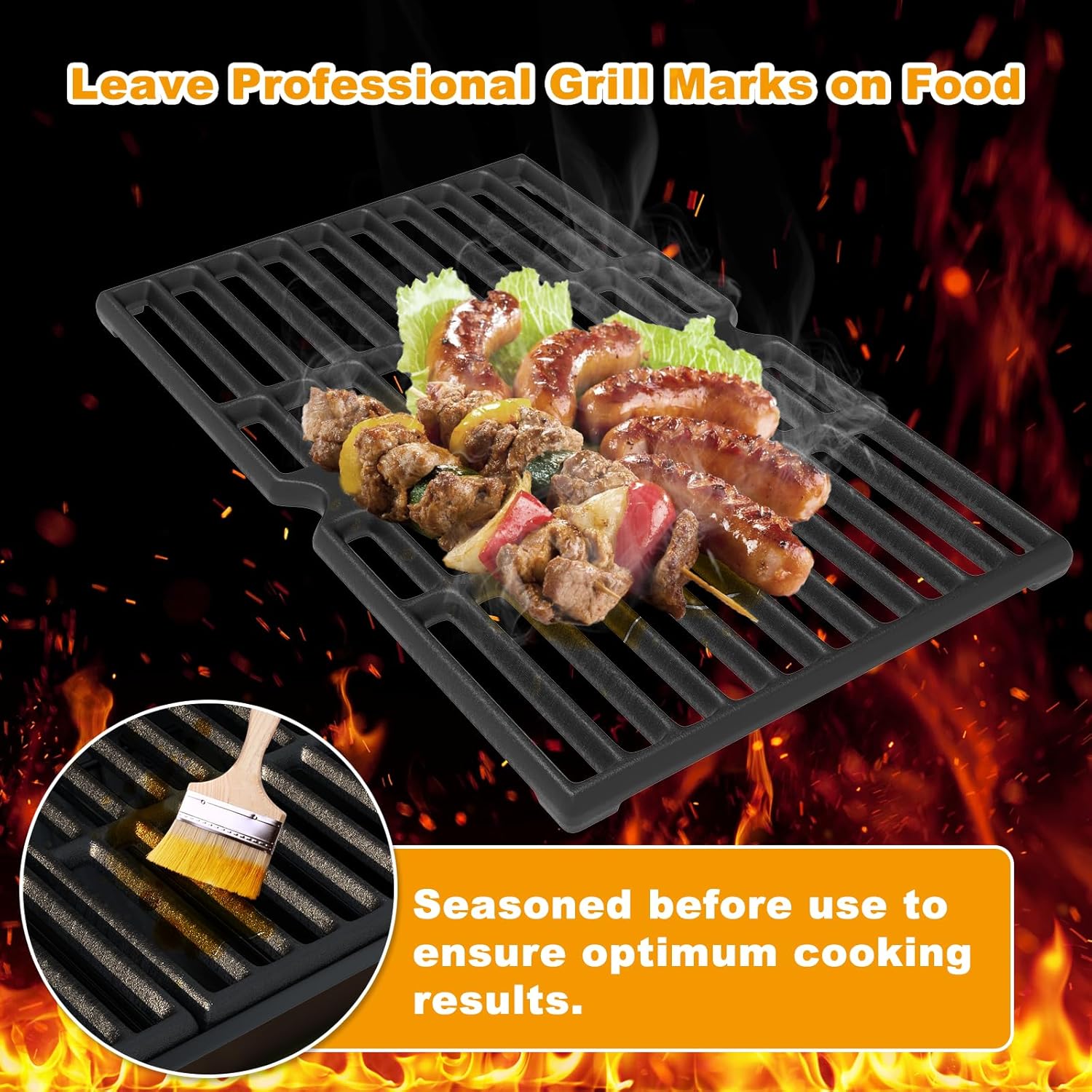 Perfect Fit: Designed for Char-Griller charcoal grill models 1624, 1515, 1224, 1616, 22424, E1515, 72424. Replacement parts for Char-Griller original model number:# CHG100086 100086. NOTE: Please carefully check the size of your original parts against our dimensions before placing an order to ensure a perfect fitPackage Includes: 3 cast iron grill grate replacements. Dimensions: 14.25" x 8.4" each, 14.25" x 16.8" for the total. The ample space allows you to grill multiple foods at once, making it ideal for family gatherings or parties.