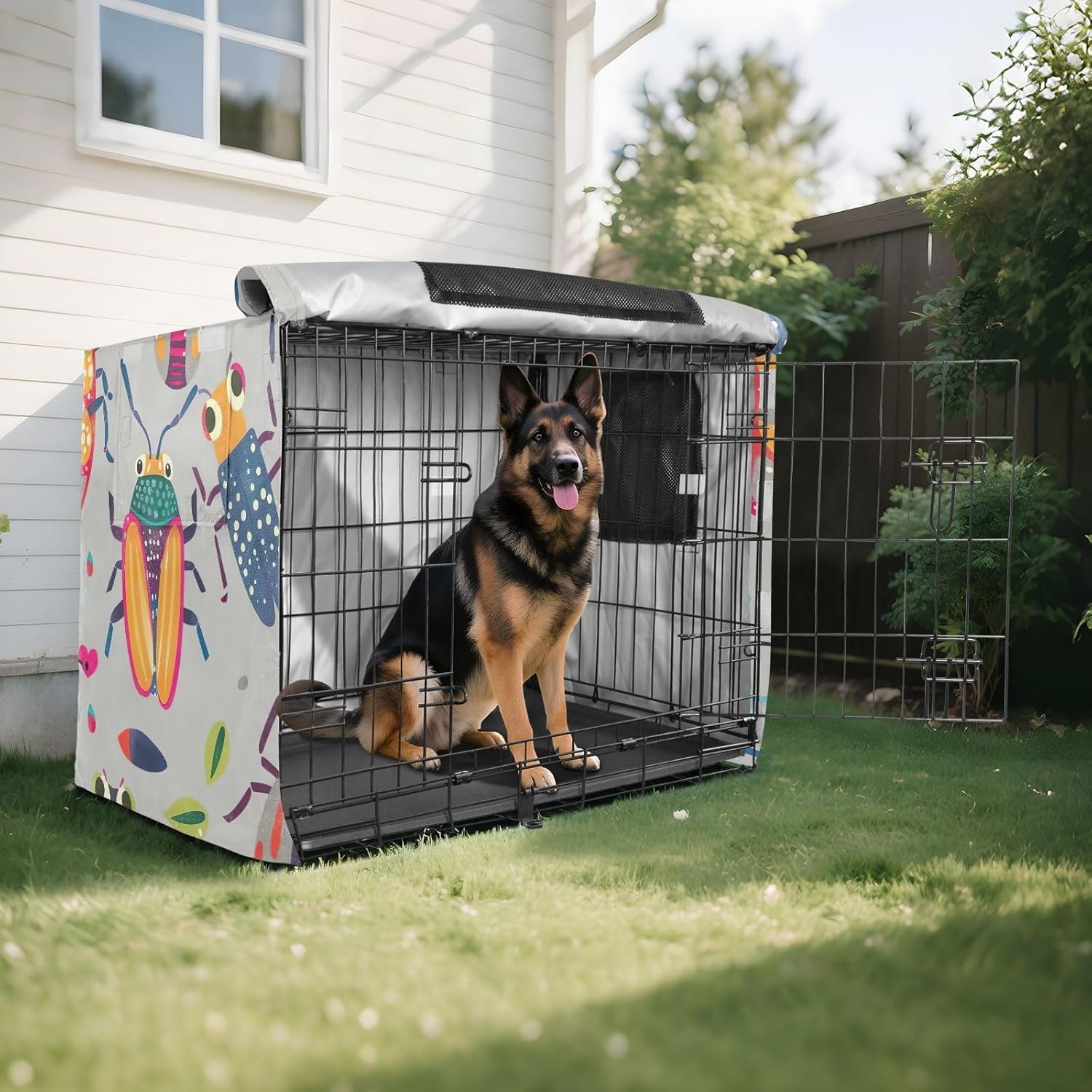 Protection – Made from 600D silver-coated oxford fabric, this dog crate cover provides reliable protection against weather conditions, including wind and rain. It prevents your dog from scratching the crate and blocks harmful UV rays.Easy Installation – This breathable dog crate cover features a user-friendly fastening system, allowing for quick installation without tools. It securely attaches to your dog crate, ensuring it stays in place for continuous protection.Effective Ventilation – Mesh windows on every side of the crate cover allow for steady airflow, keeping your dog comfortable and well-ventilated while inside. This design ensures your pet has a cool and breathable environment.Secure Fit – Equipped with four tie-down straps, the cover stays firmly in place, preventing it from shifting or being blown away. This added stability makes it suitable for outdoor use even in windy conditions.Ideal for Multiple Uses – This versatile dog cage cover is Suitable for both indoor and travel use. Whether you’re at home, on a road trip, or camping, it offers a practical solution for protecting your pet’s crate.