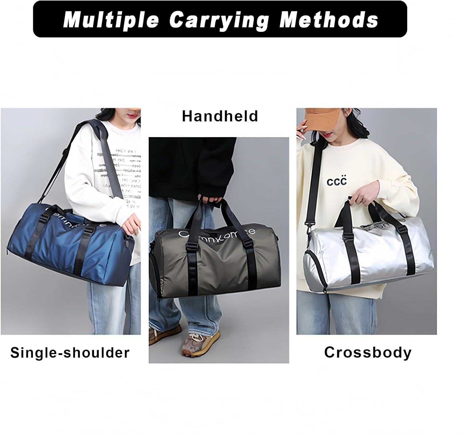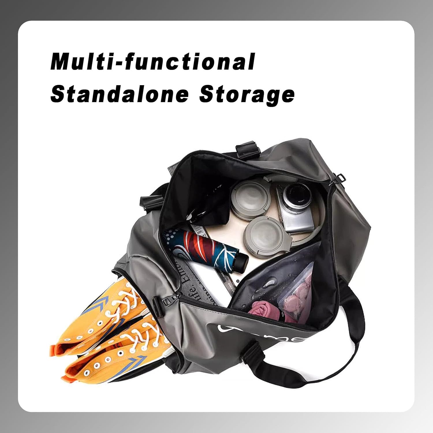 Gym Bag for Men Women Waterproof Duffle Bag with Shoes Compartment and Wet Pocket Multipurpose Sports Weekender Bags for Travel, Sports, Fitness and Workout,Black