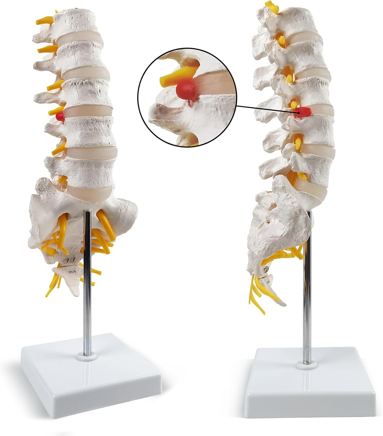 【Life Size Spine Anatomy Model 】 It consists of 5 lumbar vertebrae with intervertebral discs, lumbar nerves and spinal cord. It shows the main nerves and the herniated disc. Our spine model is portable 3D sized. You can clearly see all the main anatomical structures of the lumbar spine. Ideal for patient education or anatomical study.