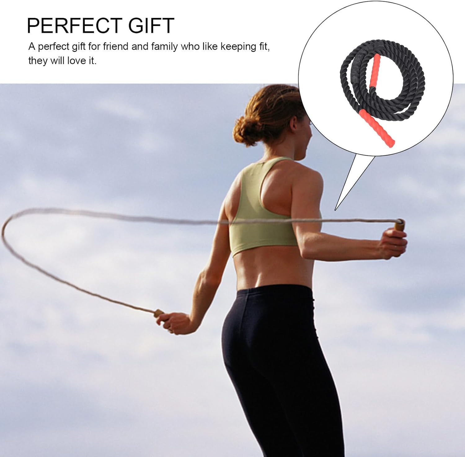 Package Include 1 x Skipping Rope Characteristics -Product Info:Heavy fitness jump rope -Material: Polyester -Size: 280.00X2.50X2.50cm/110.04X0.98X0.98in -Color: Black -Made of premium polyester material, which is durable and convenient. -A perfect gift for friend and family who like keeping fit, they will love it Exercise Jump Ropes. -Training with our other products may assist with rehabilitative exercises, fat loss, building muscle jump ropes. -jump rope is fitted with a very efficient bearing system increases its rotation power and gives you a flexibility of movement, which allows for faster and easier than regular jump ropes speed jump rope. -The unique ergonomic design and nonslip design handles provide and provide you with the firm grip you need to make the most of your workout gym rope.Goods Descriptionexercise rope Do you need a durable fitness skipping rope? If so, take a quick look at this skipping rope, which is made of material and lasts a long time.Fitness Skipping Rope You can give it to your friends and family who like keeping fit.exercise jump rope They must like it very much and it will suit them very well