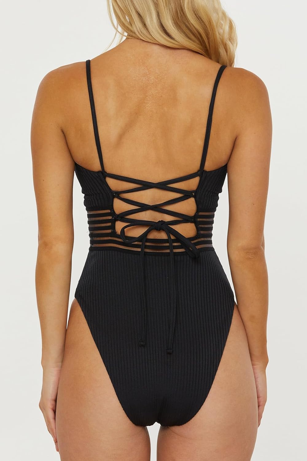 The Isabella Rose Mallorca Women's Maillot One-Piece Swimsuit is crafted for style and comfort, made from a high-quality blend of 91% Nylon and 9% Spandex. Featuring a sheer illusion elastic at the waist and a striking V-wire neckline, this swimsuit enhances your natural curves while maintaining an elegant look. The adjustable lingerie-style straps lace up at the back and are adorned with mini gold coin charms for added detail. Ideal for vacations, honeymoons, or resort wear, this swimsuit is designed to offer both support and sophistication. Hand wash in cold water to preserve its quality.