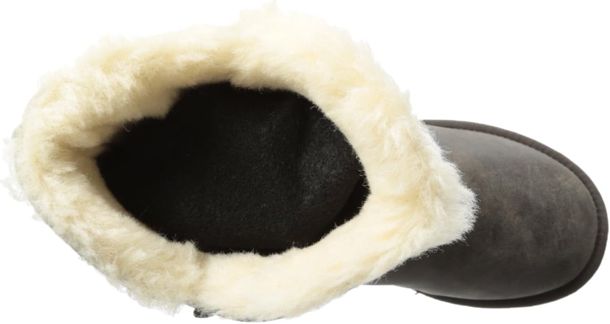 Cozy pull-on boot features raised seaming and a grippy outsole