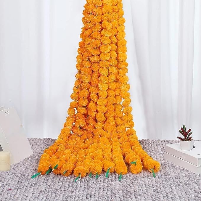 Add a vibrant and colorful touch to your space with these artificial marigold flower garlands. Each garland measures 5 feet in length and comes in a pack of 10, making them perfect for decorating large areas. Crafted from durable material, these garlands provide a long-lasting decorative option for homes, parties, and special occasions. Their realistic appearance and lightweight design make them easy to hang and reuse. Ideal for creating a festive, welcoming, and cheerful atmosphere in any setting.