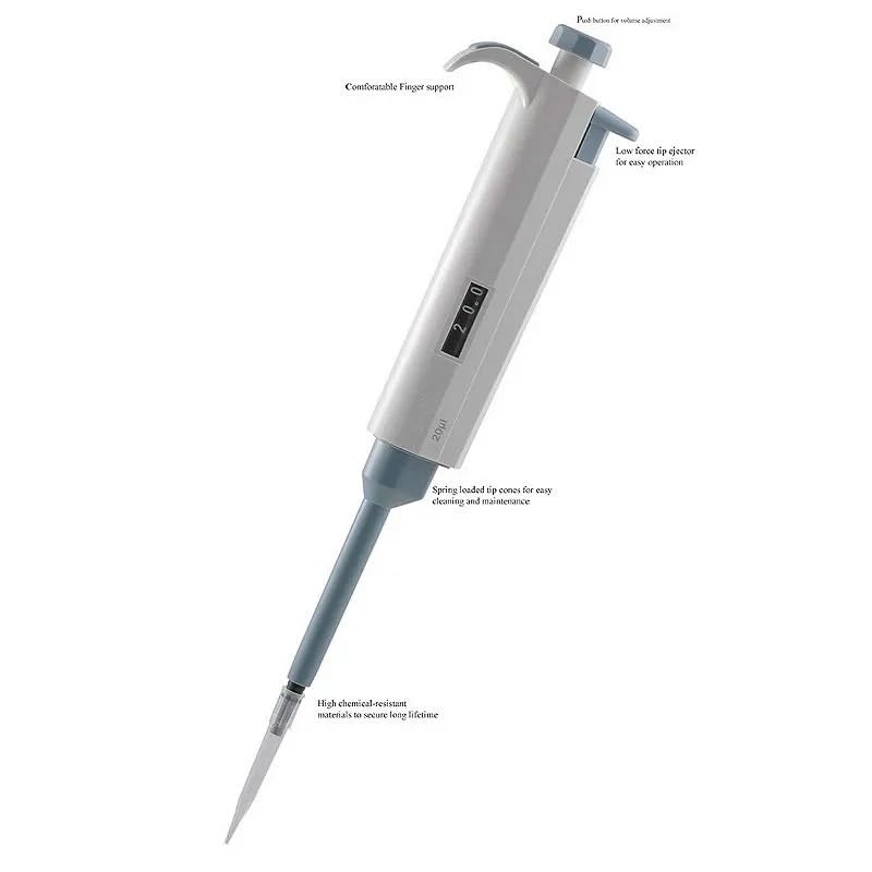 Features of single-channel pipettesLightweight and designed to meet ergonomicsDigital window, so the set range at a glanceWide measurement range, 0.1ul to 10mlUse the accessory tool that can quickly and easily calibrate and repairAccurate dispensing, each pipette are by EN / ISO8655 standard calibrationUsing new materials==========Hign-concerned Chemical : NoneModel Number : 5ul/10ul/25ul/50ul/100ul/200ul/500ul/1000ul/2000ul/5000ulOrigin : Mainland ChinaClassification : PipetteTest Volume (ul) : 5ul/10ul/25ul/50ul/100ul/200ul/500ul/1000ul/2000ul/5000ulInaccuracy (ul) : 0.065 - 6.0 ulImprecision (ul) : 0.06 - 3.0 ulPackage : 1 / PK