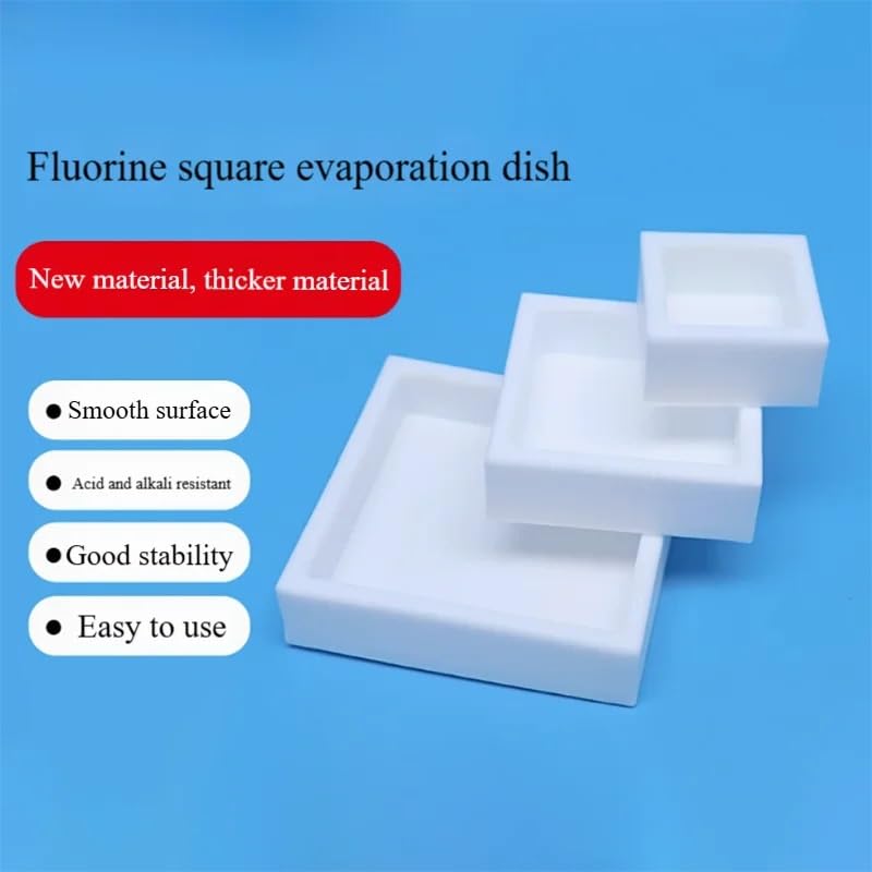 This polytetrafluoroethylene (PTFE) square evaporating dish is a durable laboratory instrument designed for sample evaporation, culturing, and general sample handling. Constructed from high-grade PTFE material, it delivers consistent performance in a variety of lab settings.The square shape offers an efficient surface area for efficient sample distribution, while the non-stick properties facilitate easy cleaning and prevent sample loss. Withstands temperatures up to 105°C, making it suitable for a range of temperature-controlled experiments.Available in sizes ranging from 40mm to 120mm, this PTFE square dish can be adapted to different experimental scales, serving as a reliable tool for chemists, researchers, and lab technicians working in fields such as sample preparation, trace analysis, and cell culture.===========High-concerned chemical : NoneOrigin : Mainland ChinaClassification : Beaker