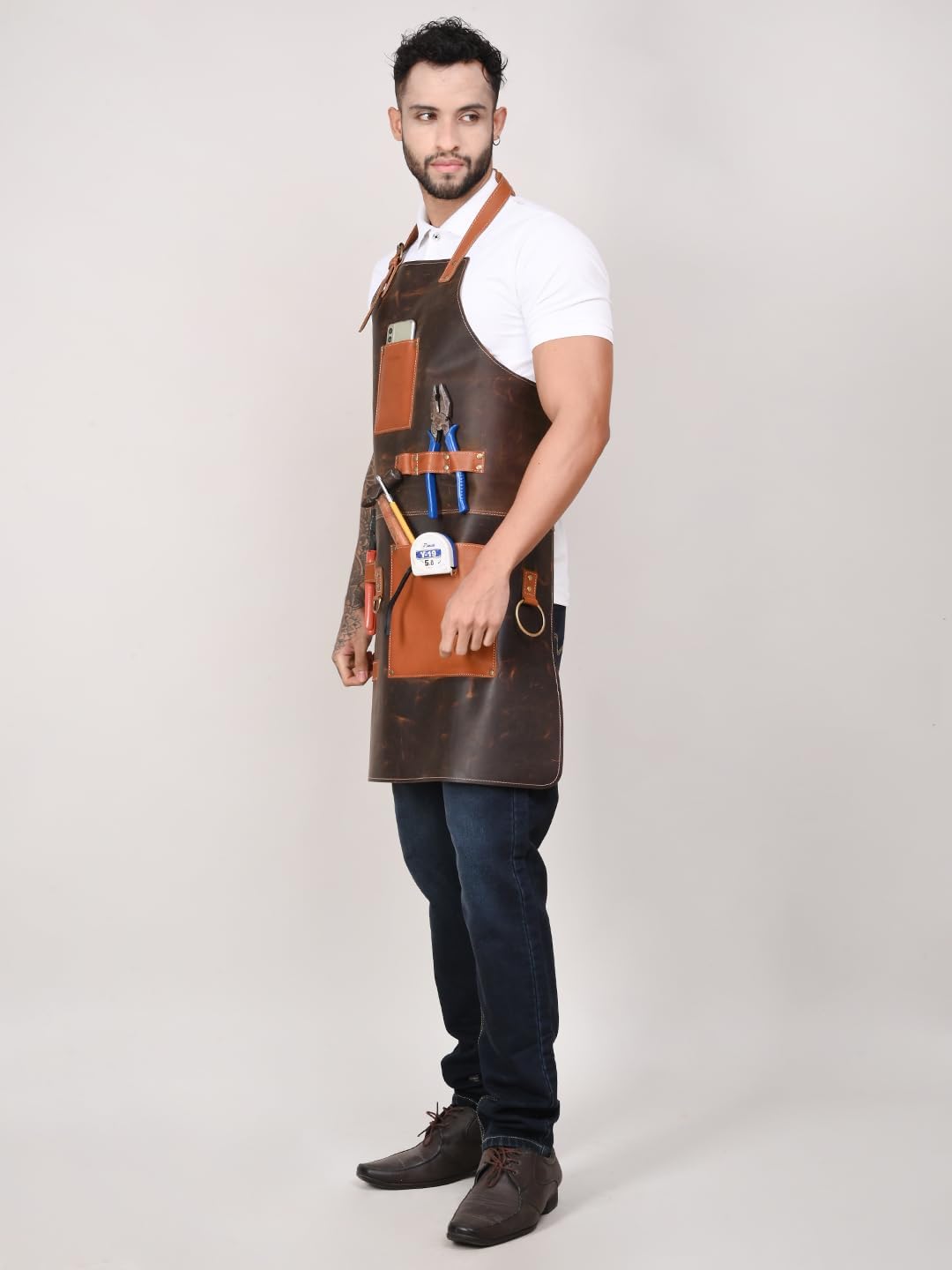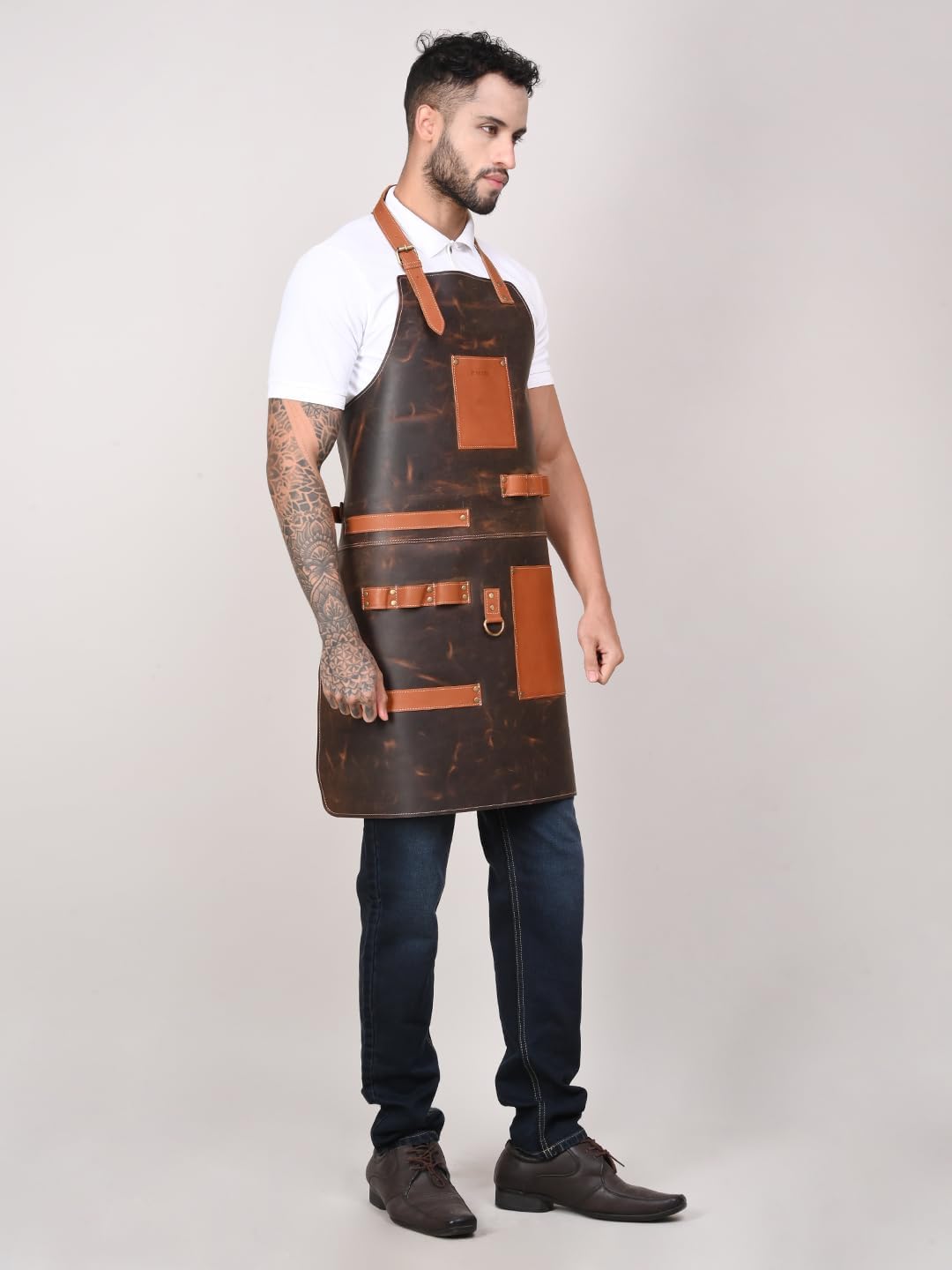 Rabada introducing Heavy Duty Cow Leather Apron – a versatile apron with durable work wear essential. Designed as a perfect woodworker's apron and can be used for all types of carpenters and Industrial wood workplaces. A welder Apron is made of fine leather and has high resistance to heat and flame. A perfect leather apron is a perfect BBQ enthusiast apron, Its sturdy leather and resistance to heat and flame make it the best apron for blacksmiths, and various industrial settings. Crafted from high-quality cow leather, this apron offers superior protection against heat and flames, ensuring safety in demanding work environments. Whether you're working in a workshop, handling welding tasks, firing up the grill, or managing industrial operations, our Heavy Duty Cow Leather Apron is your reliable companion. Invest in quality, comfort, and safety for your work wear needs.