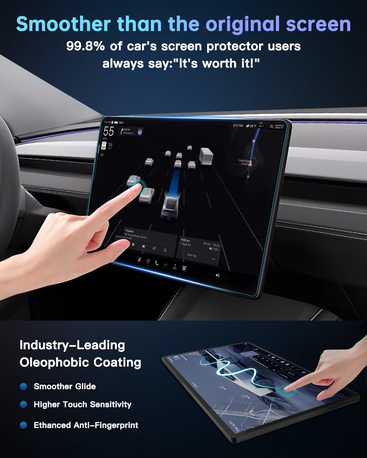 Ultimate Protection for Your 2025 2026 Tesla Model Y Juniper Premium/Performance 16" DisplayWhy do you need the 2025 2026 Tesla Model Y 16-inch screen film?Always Keep your center screen brand-new within one year.Reduce car climate control fingerprint dirty trace.Protect your car second row screen from scratch, explosion and debris.Avoid the car air condition screen from scratches due to frequent sliding and fingernails touch.Reduce your eye's fatigue,can protect eye.What’s in the Box?- 1 x 16" +1 x 8"Premium Matte Tempered Glass Screen Protector- 1 x Auto-Alignment Installation Tray- 1 x Professional Cleaning Kit (Wet Wipe, Microfiber Cloth, Dust Removal Stickers)