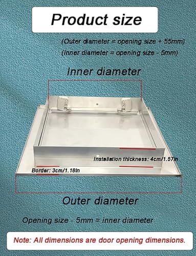 Discover the perfect blend of convenience and functionality with our recessed access panels, expertly designed for a range of applications. Made from high-quality stainless steel, these panels are ideal for plumbing access, concealed wiring, and outdoor kitchen installations. Their modern, sleek design ensures they integrate seamlessly into your cabinets or walls, enhancing the overall aesthetic of your space. Each access panel is equipped with a convenient touch latch system, allowing for quick and easy access while maintaining a polished look. With a thickness of 4cm/1.58in, these panels are designed to accommodate various installation needs. Customizable options are available to fit specific requirements, ensuring you get the perfect solution for your project. **Key Features:** - **User-Friendly Design:** Effortless opening and closing with a simple touch latch for added convenience. - **Durable Construction:** Crafted from stainless steel, these panels are built to withstand wear and tear, ensuring longevity. - **Quick Installation:** Designed for easy setup, saving you valuable time and effort during installation. - **Soundproofing:** Engineered to reduce noise, maintaining a peaceful environment in your home or workspace. - **Versatile Applications:** Ideal for use as attic doors, meter box doors, fuse box covers, inspection flaps, and more. **Package Includes:** - 1 x Access Panel - Screws for installation **Important Notes:** 1. Please specify the desired door opening direction (left or right) upon purchase. 2. For sizes not listed, feel free to contact us for customization options. Enhance your space with our recessed access panels, providing both functionality and style for your plumbing, electrical, and outdoor needs.