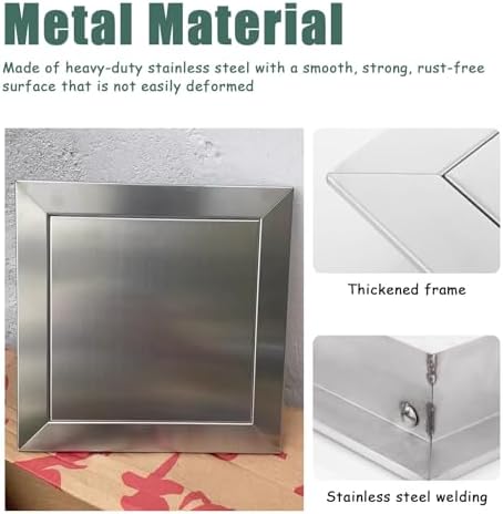 Our stainless steel plasterboard access panels are designed to offer both protection and aesthetic appeal, making them essential for any space requiring maintenance access. These versatile panels seamlessly blend into your interior decor, providing a discreet solution for accessing HVAC systems, pipes, electrical wiring, and attic passages. **Product Specifications**: - **Frame**: Durable Stainless Steel - **Customizable Sizes**: Width ranges from 6 to 20 inches (15 cm - 50 cm) and height from 6 to 35 inches (15 cm - 90 cm) - **Installation Thickness**: 4 cm (1 5/8 in) **Key Features**: - Excellent sealing for enhanced durability - User-friendly installation process - Advanced seamless welding technology for a polished finish - Effortless opening and closing mechanism - Reliable fire resistance properties - Customizable dimensions to fit various requirements - Ideal for barbecue access doors, meter box doors, well access hatches, and loft doors - Quick installation into walls or other structures **Package Includes**: - Access Panel (with included screws) **Important Notes**: - Please provide the exact measurements of your opening when placing your order. - Allow for slight deviations due to manual measurement. - Product colors may vary slightly from images due to different digital equipment; please refer to the actual product for accuracy. **Customer Commitment**: We are dedicated to providing you with trusted service and support. If you have any questions or need assistance, please feel free to reach out to us. Enhance your space with our quality access panels and enjoy peace of mind knowing that maintenance access is made easy and stylish.