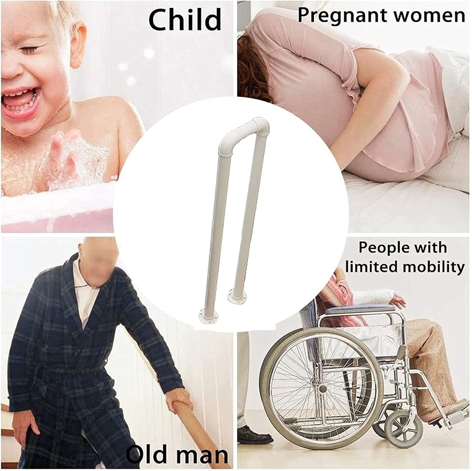 ★You Can Choose The Height And Width Of The Handrail According To The Height And Width Of The Step, The Number Of Products Can Be Selected According To The Actual Situation.★Especially suitable for children, Pregnant woman, the elderly and Handicapped, It is an indispensable help for people who have difficulty climbing stairs★The handrails are well supported on the stairs. It can be used indoor and outdoor, simple solutions for all your stairs, walkways and halls, bath and showers, ramps and decks, dry and wet environment and anywhere you need a solid grip.★Product Details:-Name: U-shaped Stair Handrail-Product Color: white-Handrail width: 20cm (7.9 inches)-Product Height: 35cm--100cm available in a variety of sizes-Pipe diameter: 3.2cm (1.3 inches)-Product Material: Real wrought iron galvanized pipe, will not rust or flex.-Universal Application: suitable for indoors and outdoors, gardens, residential buildings, commercial office buildings, hotels.-Installation range: can be installed on stairs, such as masonry or paver steps, concrete steps, solid wooden steps, etc.-Packing: 1 × Armrest, Installation kit★When measuring manually, the product size may show a physical error of 2-3 cm★If you need other sizes, don't worry, because we are a factory specializing in handrails. We can provide you with tailor-made services, please send us the size you need, and we will make your house more beautiful and safer.