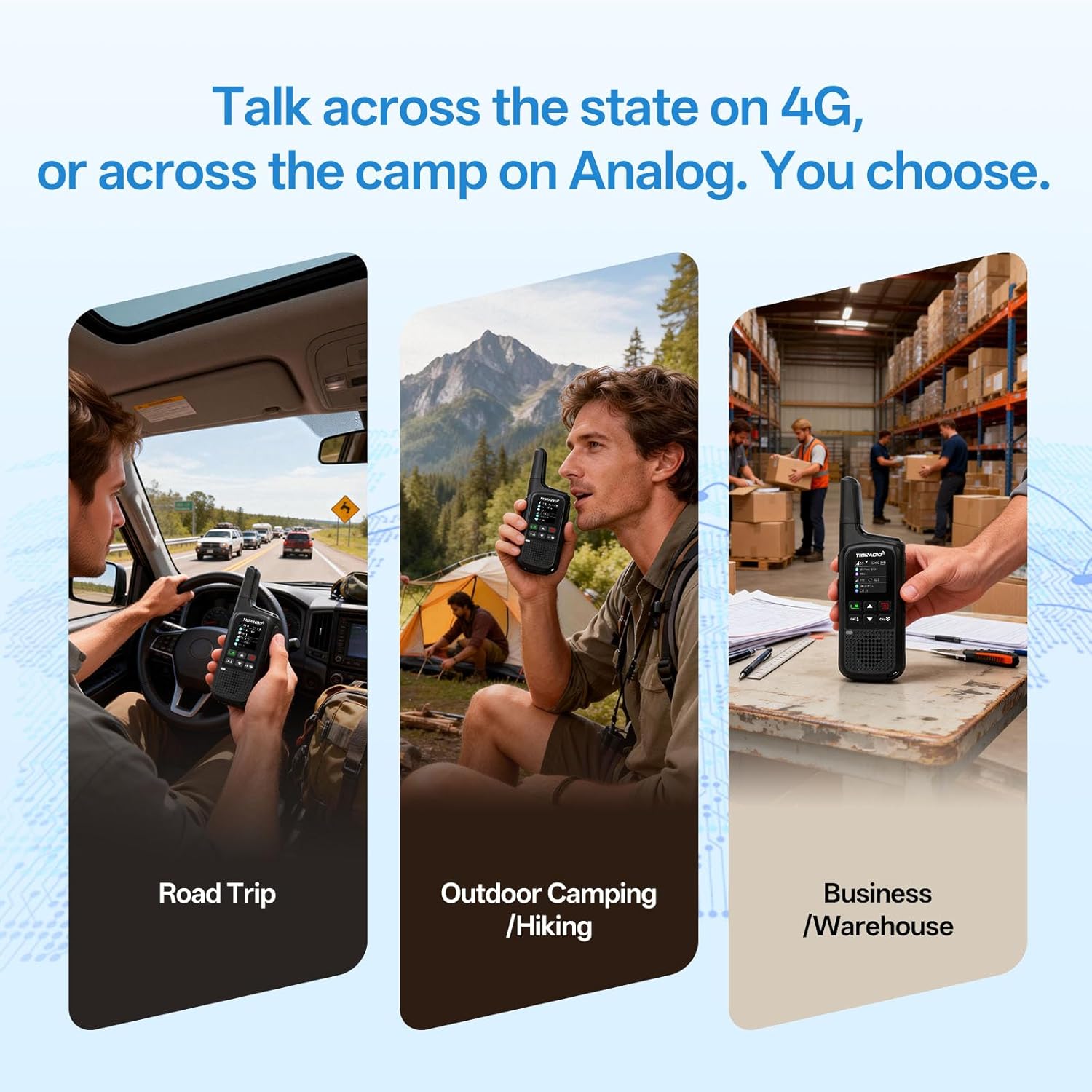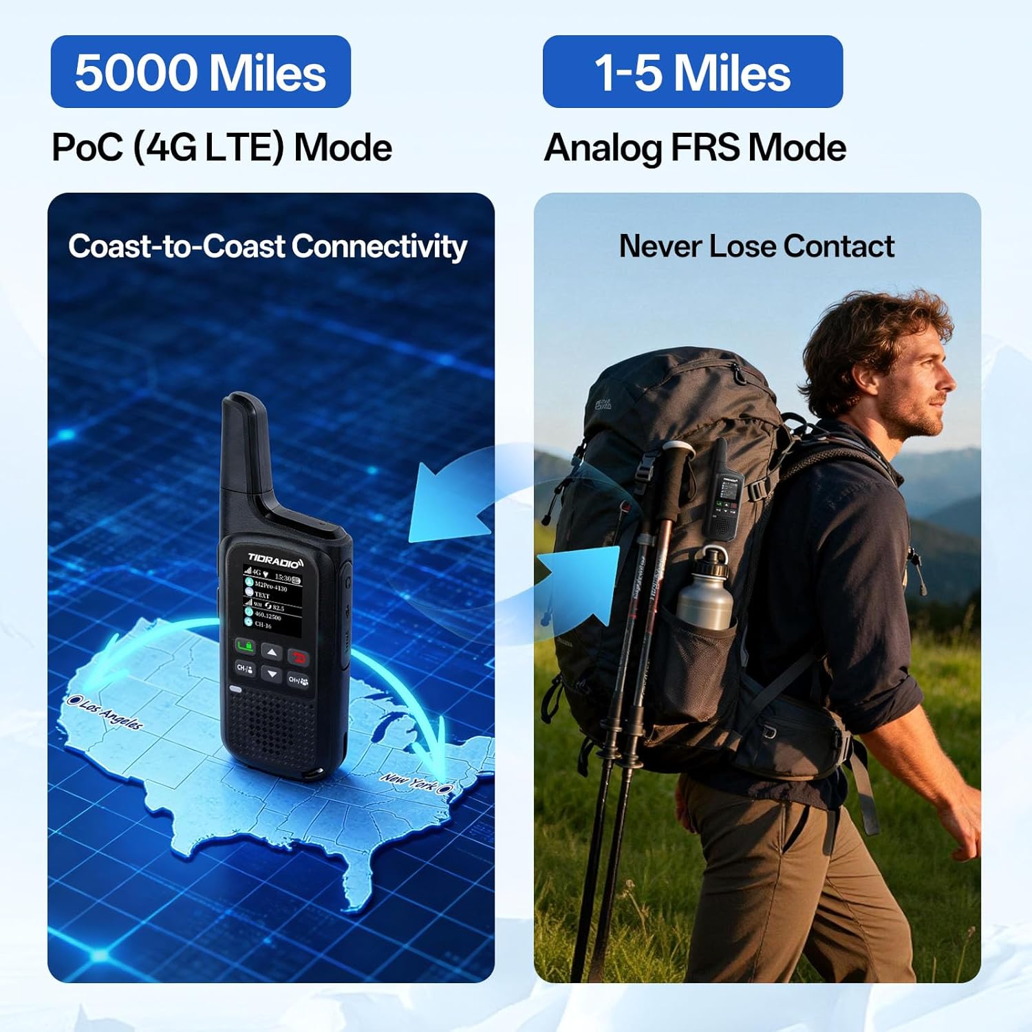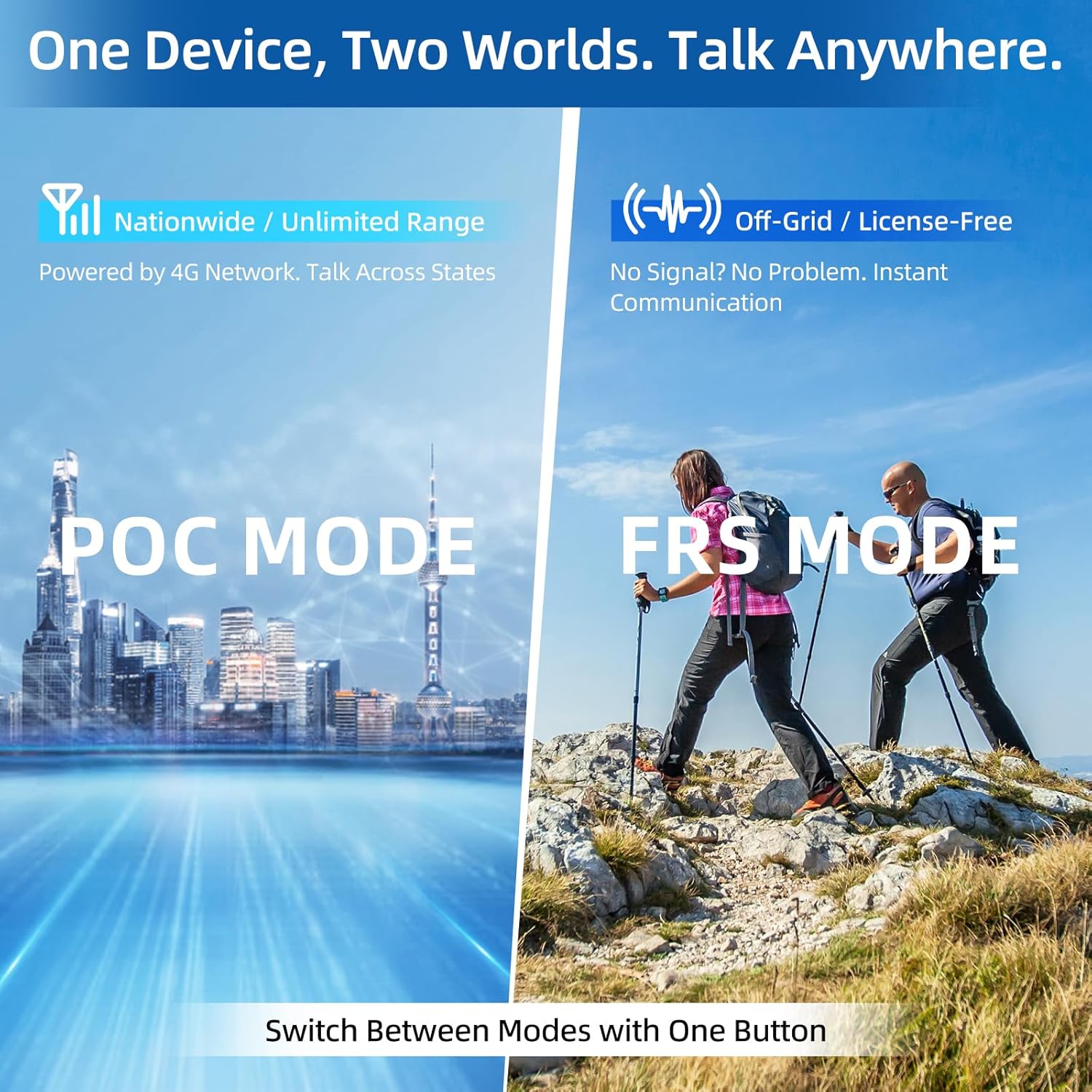 | Additional Features | 2-in-1 Walkie Talkies:Global 4G LTE + FRS., Compatible with All FRS Radios from Other Brands, Global Coverage with LTE. Unlimited Range.(POC Mode), Manage in One APP (Odmaster), Works Off-Grid. Works When Phones Don't.(FRS Mode) |