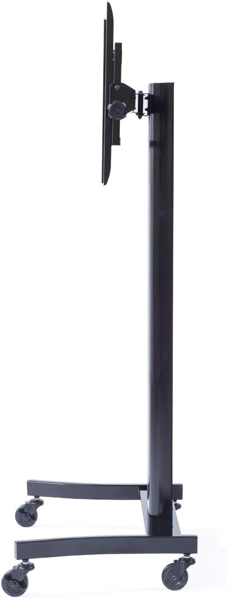 Simple and elegant in design yet highly functional flat panel TV stand/cart with universal Mounting system; it's a perfect flat panel TV display system for home and commercial Application. It's a great addition for living room, boardroom, game room, classroom, lecture hall and trade show display; accommodate up to 80 inch flat panel TV & curved screen TV or not to exceed 150 lbs.; constructed with engineered curved wood, laminated with natural walnut veneer that provide strength and support for the TV stand; Multi-Layer hand rubbed obsidian finish make it looks beautiful at home or any commercial Location. Universal TV Mounting system with 15º tilt and 45º Pivot capability; heavy gauge steel base and commercial grade casters with lock included; cable management system to organize cables & wires; contemporary design compliments any room decor; easy to assemble. Available in obsidian finish. Overall Dimensions: 35" W x 19.7" d x 63.9 " h maximum supported Mounting Interface: 600 mm (W) x 400 mm (h)