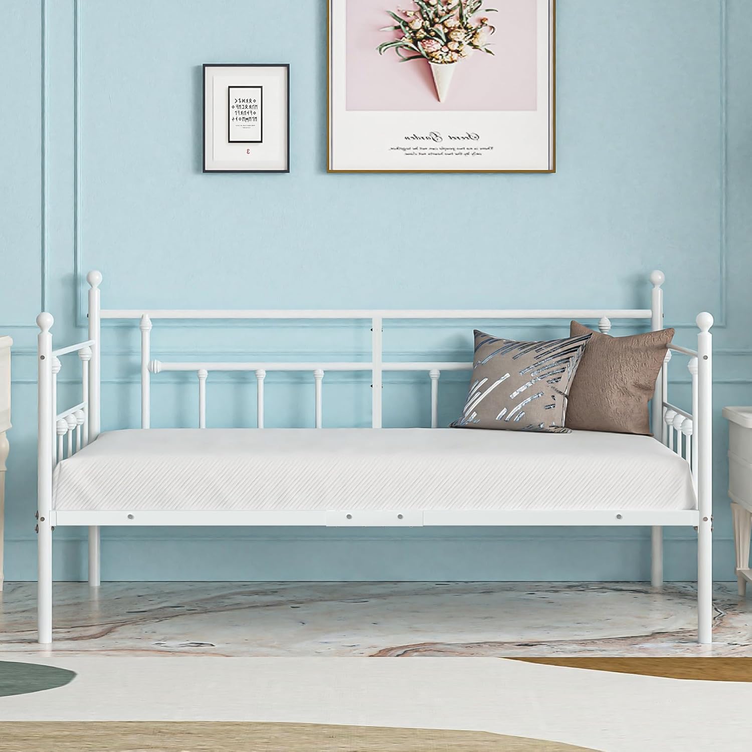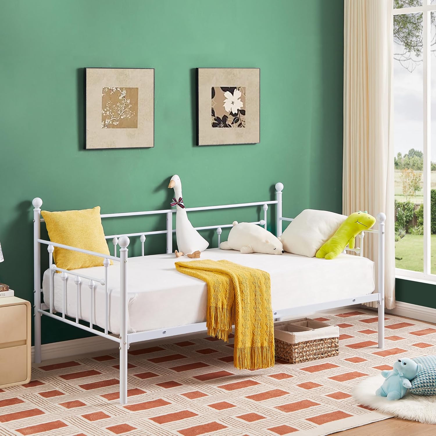 VECELO Twin Size Premium Daybed frame, You Definitely Deserved It!What are our advantages?NO Box Spring NeededNO Squeak & Scratching12.6 in Under Bed ClearanceEnhanced Metal LegsExcellent Customer-ServiceCost Effective (Price Advantage)Specifications:VELELO Premium Daybed frameBed Frame Color: Black/WhiteStyle: French Max Load: 660 lbPackage Includes: 1 xDaybed Frame 1 x Instruction1 x Assembly KitTips:Do not tighten screws until fully assembled. Make sure the legs remain in contact with the ground.Mattress is not includedCheck all screws or bolts are tightened and inspected regularly.