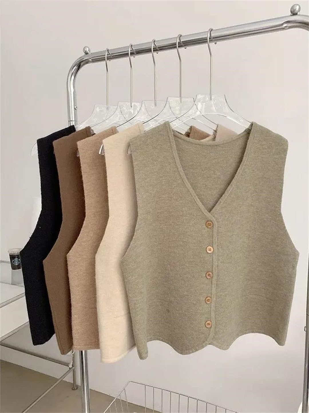 Material Composition:KnittingMaterial:Acrylic,COTTONPattern:Loose-FittingYarn Thickness:Regular YarnSeason:Autumn/WinterAge:JUNIORThickness:STANDARDClosure Type:Single BreastedPattern Type:SolidCollar:V-NeckClothing Length:RegularDecoration:ButtonSleeve Style:RegularStyle:CasualSleeve Length(Cm):SleevelessGender:WOMENOrigin:Mainland ChinaElasticity:Medium StrecthFit Type:Regulai Fit