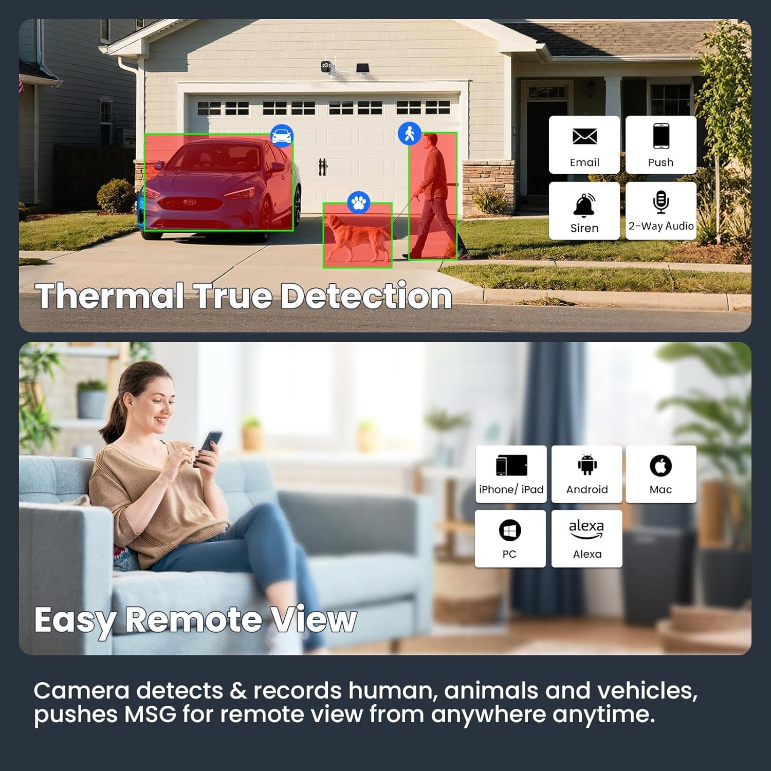 | Other Special Features of the Product | 1300ft Long Range Wi-Fi on Open Ground, All-Weather-Charge Solar Panels, Infrared B&W and Flood Lights Color Night Vision, No Monthly Fee, TESLA-type 9000MAH Big Batterie Packs |