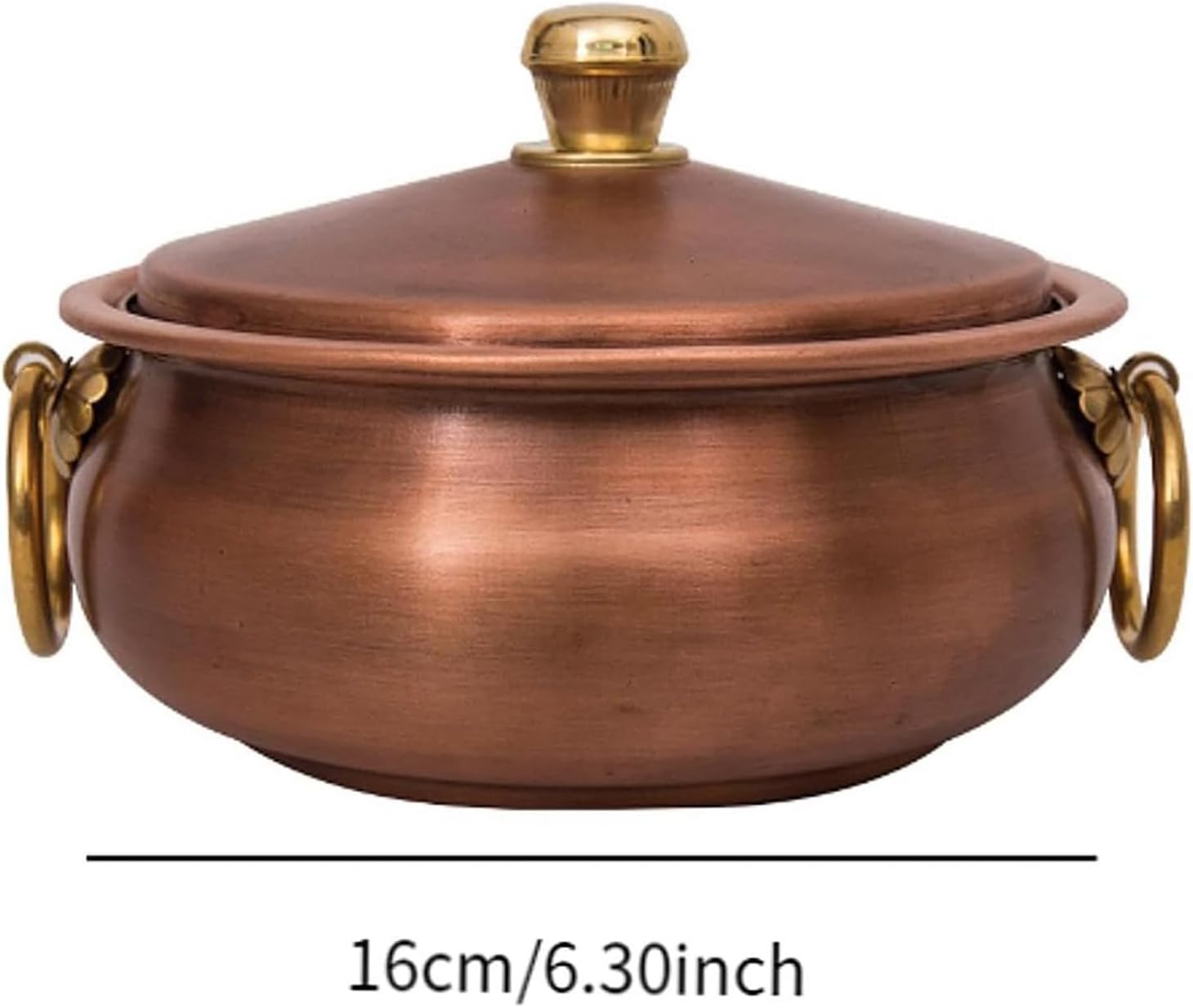 Description:- 【Product Name】: This vintagestyle copper pot is fit for cooking dishes, meats and soups for 1 or 2 people, Compatible with induction and gas cooker,making it a in your home.- 【Material】: Crafted from quality copper, this saucepan not only offers great heat conductivity for quick and efficient boiling but also adds a touch of traditional elegance to your kitchen or dining room decor.- 【Dimensions】: Our Stockpot are available in three sizes with diameters of 18, 20 and 22 cm to meet your cookware needs- 【Packaging】: packaged in a box (1 copper pot per box) ensuring it arrives reliably at your doorstep ready for use.Product: soup potMaterial: copperFeatures: uncoated panModel: StovepanApplicable gifts occasions: dual-use home and hotel.Pot bottom material: double bottomCap type: pure copper splitApplicable stove: General