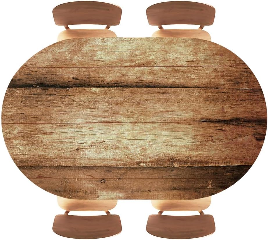 Pyfvdcrxesz oval fitted tablecloth, elastic edge polyester cover, lines pattern wood texture beige background, waterproof for indoor kitchen, outdoor picnic tables, 4 sizes optional