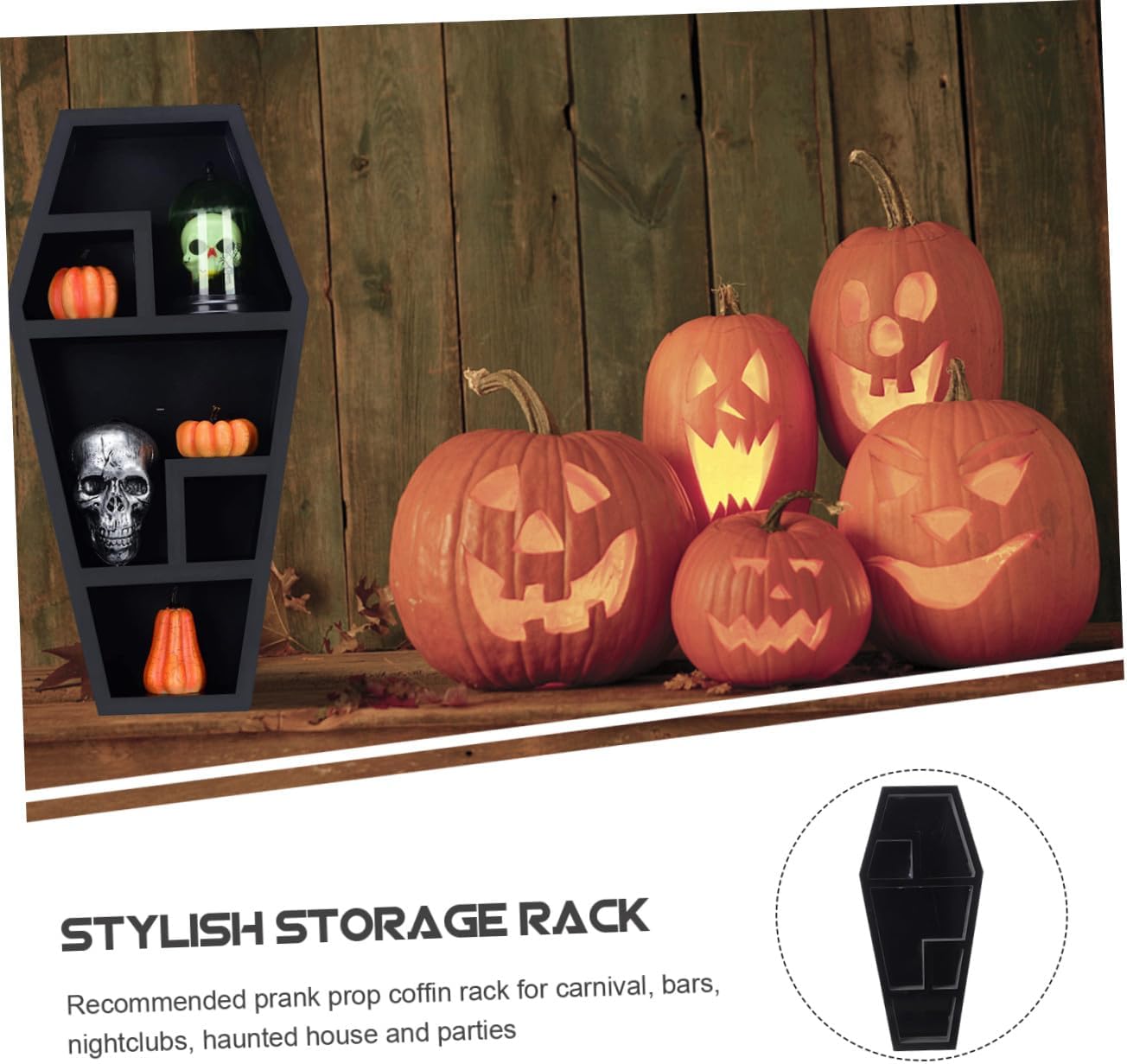 Package Include 1 x Coffin Storage Rack Characteristics - Color: Black Coffin Shaped Holder - Material: Plastic Supply - Size: About 38.00X18.00X4.70cm/14.93X7.07X1.85in Coffin Storage Shelf - Create creepy and scary feel to party. Your party will be remarkable with such a funny accessory Horror Ornament. - Use this unique shelf for candles, books, coffin-shaped mirrors, stones, figurines and more Prank Prop. - Put small skull on it, makes you experience gothic exhibitions at home Gothic Coffin Rack. - It is not only decoration, but also can be used as storage rack, unique and decorative for you Halloween Decor. - You can show your fun and creative style with your coffin rack. Desktop Ornament RackGoods InformationHorror Coffin Rack The classic and chic black coffin rack is choice to add the festival atmosphere, adding more fun and bringing more fun to the party.Coffin Shaped Holder Made of plastic material, durable, no fading, no deformation, light and portable, decorative and reusable
